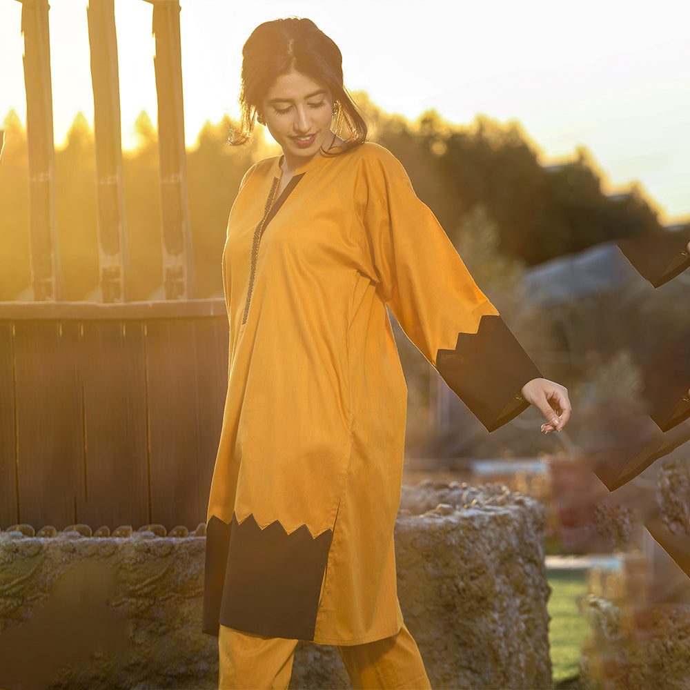 A retro combination of mustard and black. A black zigzag patch on bottom and sleeves makes the whole outfit simple yet trendy.Note: Product colour may vary slightly due to lighting or screen resolution.